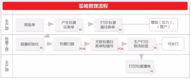 裝箱階段:現(xiàn)場操作人員,用于采集、驗(yàn)證現(xiàn)場的生產(chǎn)數(shù)據(jù)。包括包裝作業(yè)單、物流標(biāo)簽生成、查詢、報(bào)表等。完成企業(yè)在包裝環(huán)節(jié)的數(shù)據(jù)登記等。實(shí)現(xiàn)生產(chǎn)訂單、報(bào)檢和包裝作業(yè)的關(guān)聯(lián)和數(shù)據(jù)校驗(yàn),避免包裝過程的多包、漏包和錯(cuò)包的現(xiàn)象。